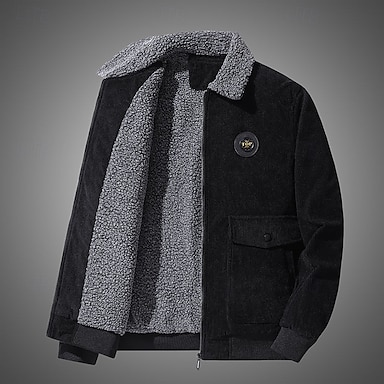 Herr Vinterjacka Fleece-jacka Vardaglig jacka Dagligen Semester Håller värmen Ficka Fleece Höst vinter Slät Mode Streetwear Kavajslag Normal Mörkgrå Svart Kaki Armégrön Jacka