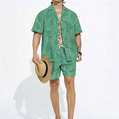 Herr Tropiska blommor 2st Skjortor Set Skjorta Kortärmad Korta byxor Kubansk krage Semester Ledigt vardag Fest Ledigt Dagligen 3D-utskrift Sommar Grön