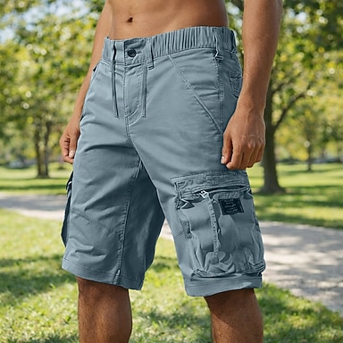 Herr Cargobyxor Cargo-shorts Shorts Casual shorts Ficka Elastisk midja Slät Knelängd Ledigt Utomhus Streetwear Mode Streetwear Svart Kaki Oelastisk