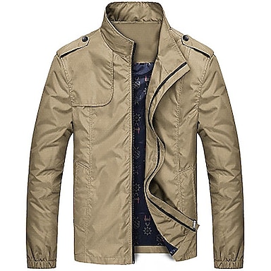 Herr Lättviktsjacka Cargojacka Vardaglig jacka Semester Dagligen Håller värmen Ficka Höst Vinter Slät Mode Klassisk Hög krage Normal Ljus kaki Kaki Jacka