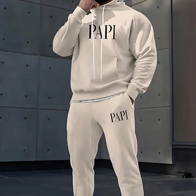 Herr Text / nummer 2st 3D-tröja set Träningsoverall Hoodie-tröja Långärmad Långa byxor Huva Ledigt vardag Fritids- 3D-utskrift Vår Höst Vinter Brun