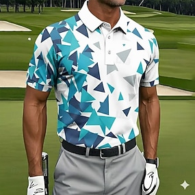 Herr Geometrisk Golf Sport pikétröjor Kortärmad Polotröjor Skjortor med krage Ledigt Fritids- Knappar Sommar Vår Blå Vit Grön