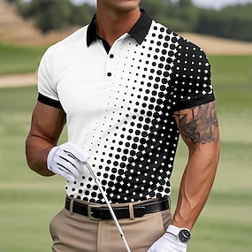 Herr Cirkel Golf Sport pikétröjor Kortärmad Polotröjor Skjortor med krage Ledigt Utomhus Sport Dagliga kläder 3D-utskrift Sommar Sjöblå Vit Blå