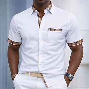 Herr Skjorta Knapp upp skjorta Rutig Ledigt Dagligen Svart Vit Kortärmad Nedvikt Sommar Kläder Lappverk
