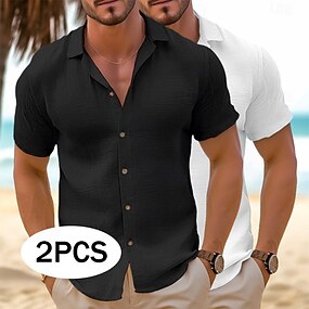 Herr Skjorta Sommarskjorta Standkläder Knapp upp skjorta Slät Semester Ledigt Blå+Ljusblått Vit+Rosa Ljusblå + rosa Grön+khaki Kortärmad Kavajslag Sommar Kläder Flerpack