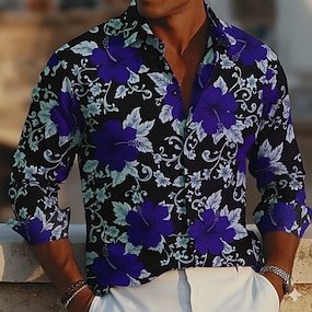 Herr Blomtryck Blommor Skjorta Knapp upp skjorta Långärmad Mode Casual Helgdag Ledigt / vardag Vår Höst Nedvikt 3D-utskrift krage skjortor Purpur Grön Rosenröd
