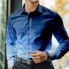 Herr Gradient ränder Skjorta Knapp upp skjorta Långärmad Business Casual Formell Företag Dagligen Höst Vinter Vår & sommar Tröjkrage Knappen uppåt 3D-utskrift Svart Rubinrött Blå Purpur