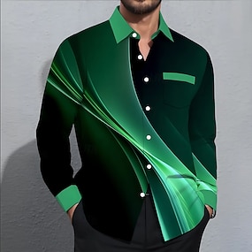 Herr Geometrisk Gradientfärg Linje Skjorta Knapp upp skjorta Långärmad Mode Casual Dagligen Streetwear Semester Vår Höst Nedvikt 3D-utskrift krage skjortor Främre en ficka Svartgrå Svart / Grön Guld