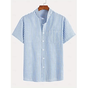 Herr Skjorta Linneskjorta Sommarskjorta Strandskjorta Vertikala remsor Ledigt Dagligen Blå Rodnande Rosa Kortärmad Kraghalsband Sommar Vår Kläder