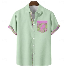 Herr Löv Växter Skjorta Sommarskjorta Knapp upp skjorta Kortärmad Mode Casual Semester Vardag Sommar Vår Nedvikt 3D-utskrift krage skjortor Främre en ficka Rodnande Rosa Blå Purpur Grön