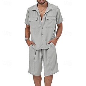 Herr 2 delar Skjorta set Sommar set Casual skjorta Knapp upp skjorta Svart Vit Ljusgrön Grön Khaki grön Kortärmad Slät Krage Semester Dagligen Ficka Kläder Mode Ledigt Bekväm