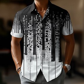 Herr Gradientfärg Piano Musikinstrument Skjorta Knapp upp skjorta Kortärmad Vintage retro musikfestival Helgdag Sommar Vår Nedvikt 3D-utskrift krage skjortor Rubinrött Purpur Grön Svart