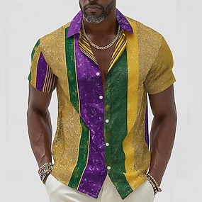 Mardi gras Herr Färgblock Karnival Skjorta Knapp upp skjorta Kortärmad Mode Casual Fest Helgdag Sommar Vår Nedvikt 3D-utskrift krage skjortor Gul