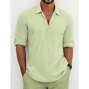 Herr Skjorta Linneskjorta Sommarskjorta Standkläder Knapp upp skjorta Slät Semester Ledigt Svart Vit Blå Grön Långärmad Kavajslag Vår & sommar Kläder
