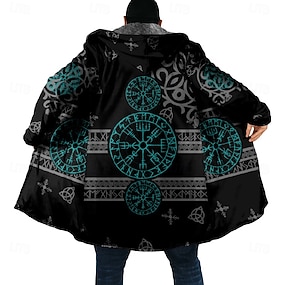 Herr Viking Vinterkappa Fleece-jacka Kappa Håller värmen Bekväm Ledigt Dagliga kläder Dragkedja Ficka 3D-utskrift Höst Vinter Huva Långärmad Svart 1 Svart Svart 2