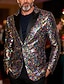Herr Kavaj Företag Cocktailfest Bröllopsfest Mode Ledigt Vår Höst Polyester Slät Ficka Glitter Bekväm Enkelknäppt Blazer Svart
