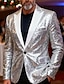 Herr Kavaj Julkavaj Jul Företag Cocktailfest Mode Ledigt Vår & Höst Polyester Slät Ficka Knappar Bekväm Enkelknäppt Blazer Silver Svart Vit Grön