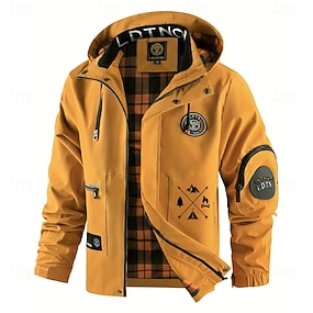 Herr Grafisk Berg Vindtät jacka Huvjacka Anorak Vattentät Vindtät Multi-pocket Ledigt Utomhus Camping och vandring Avtagbar huva Blixtlås i fullängd Snygg kappa ytterkläder Höst Vinter Hög krage