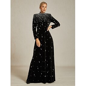 Kvinnors paljetterad maxiklänning kroppsnära klänning elegant kvällsfest vanlig passform enfärgad lång ärm crew neck svart höst vinter