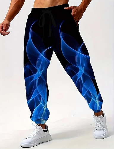 Herr 3D Print Blixt Låga Joggingbyxor Joggare Långbyxor Medium Midja Dragsko Elastisk midja Ledigt Joggning Streetwear Träningspass Atletiska mjukisbyxor med fickor Vår Höst 3D-tryck Svart Rödblå