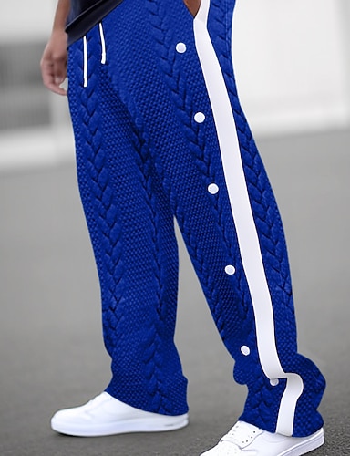 Herr Joggingbyxor Joggare Långbyxor Snörning Elastisk midja Sidoknapp Lappverk Komfort Andningsfunktion Ledigt Dagligen Helgdag Sport Mode Blå Vit