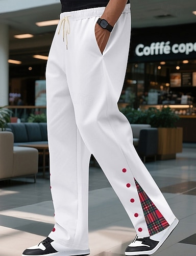 Herr Atletiska byxor Joggingbyxor Långbyxor Ficka Snörning Elastisk midja Rutig Lappverk Komfort Utomhussport Dagligen Mode Ledigt Svart Vit Microelastisk