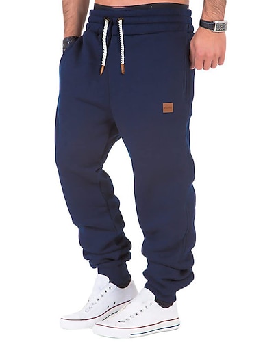 Herr Atletiska byxor Joggingbyxor Joggare Långbyxor Ficka Elastisk midja Snörning Slät Komfort Utomhussport Dagligen Mode Ledigt Blå Mörkgrön Microelastisk
