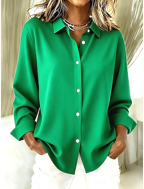Dam Linneskjortor i bomull Konstbomullslinne Knappar Ensfärgat Dagligen Stylish Grundläggande Långärmad Hög hals Långa toppar Dagligen Blå Brun Grön Beige Sommar Vår Höst