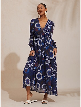 Mallorca Blossom Flowy Chiffon Dolman Sleeve Maxiklänning