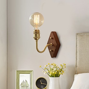lightinthebox keramisk vägglampa liten vägglampa, rustik valnötsträ väggmonteringslampa, vintage sänggavellampa, inomhusbelysningsarmatur för sovrum vardagsrum matsal hall 110-240v