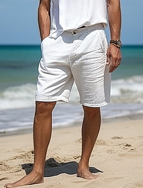 Herr Shorts Linne Shorts Sommarshorts Beach Shorts Knappar Ficka Slät Komfort Andningsfunktion Kort Semester Helgdag Strand Hawaiisk Boho Vit Kaki