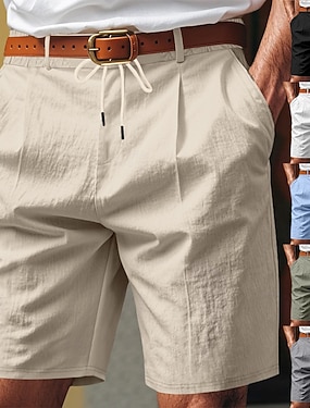 Herr Shorts Linne Shorts Sommarshorts Beach Shorts Snörning Elastisk midja Rakt ben Slät Komfort Andningsfunktion Knelängd Utomhus Dagligen Helgdag Semester Mode 다크 카키 Svart