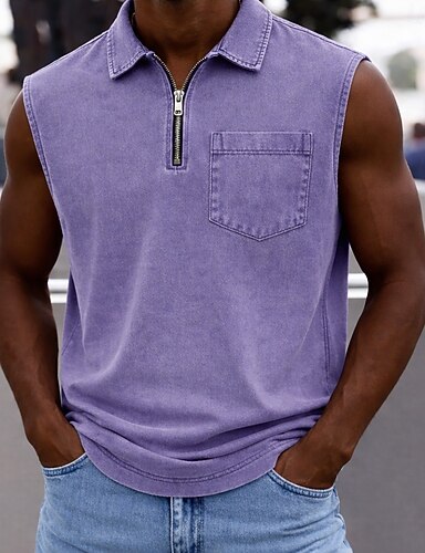 Herr Pikétröjor Tvätta skjorta i 100 % bomull Ledigt Helgdag Kinakrage Ärmlös Mode Grundläggande Slät Årgång Slät Sommar Vår Blå Rodnande Rosa Purpur Pikétröjor