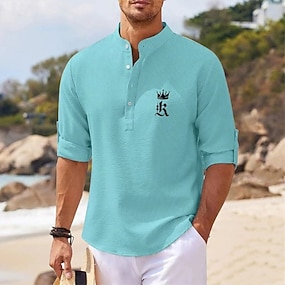 Herr Popover skjorta Sommarskjorta Casual skjorta Strandskjorta Våffelstickad skjorta Svart Vit Blå Himmelsblå Mörkgrå Långärmad Bokstav Klassisk Hög krage Henley Semester Hawaiisk Spänne Kläder