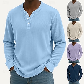 Herr Våffelpikétröjor Ledigt Gata V-hals Måskrage Långärmad Mode Grundläggande Ensfärgat Färgblock Vår & Höst Höst vinter Normal Svart Marinblå Kaki Armégrön Grå Våffelpikétröjor