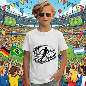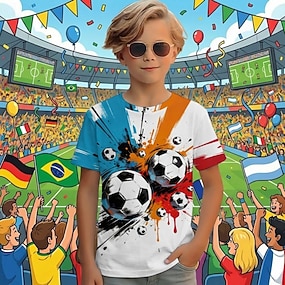 Pojkar 3D Fotboll T-shirt Kortärmad Sommar Vår Mode Grundläggande Barn 4-12 år Rund hals Utomhus Ledigt Dagligen Normal