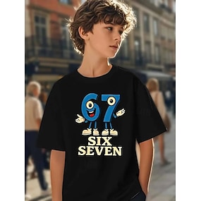 Unisex Pojkar 3D Grafisk Rolig slang 67 T-shirt Kortärmad 3D-tryck Sommar Vår Sport Mode Streetwear Barn 4-12 år Rund hals Utomhus Ledigt Dagligen Normal