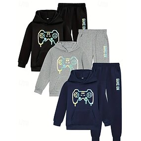 Pojkar 3D Grafisk Spel Huvtröja & träningsbyxor Set Sportdräkt Träningsoveraller Långärmad Höst Vinter Dagligen Grundläggande Ledigt Barn 4-12 år Huva Utomhus Semester Sport Skräddarsydd passform