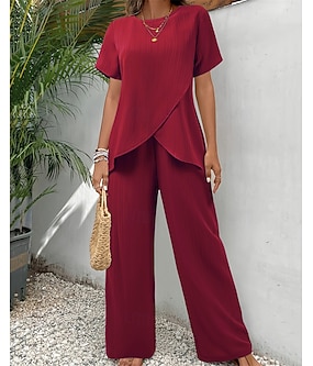 Dam T-shirt Byxuppsättningar Bolero Top Kortärmad Rund hals Ensfärgat Mode Streetwear Dagligen Utomhus Semester Rubinrött Marinblå Grön Sommar Normal Lös passning