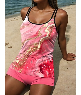 Kvinnors tankini 2-delad baddräkt Shorts Backless Semester Strandkläder Grafisk U-ringad Ärmlös Baddräkter