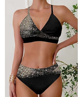 Damernas bikini 2-delad baddräkt troslik smal rygglös semester strandkläder ombre V-hals utan ärmar baddräkter