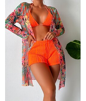 Damernas bikini 3-delad baddräkt palm shorts mage kontroll hög midja smal rygglös semester strandkläder blommig halterneck utan ärmar baddräkter
