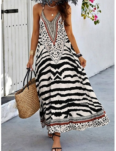 Dam Maxiklänning Boho-klänning Vardagsklänning Slipklänning Elegant Mode Modern Utomhus Semester Utekväll Normal Randig Ärmlös V-hals Svart Rodnande Rosa Marinblå Sommar Vår