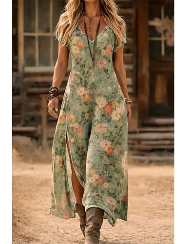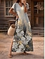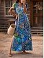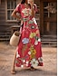 Dam Maxiklänning A linjeklänning Ledigt Strand Normal Blommig Grafisk Kortärmad V-hals Blå Rubinrött Orange Grön Sommar Vår