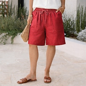Dam Shorts i bomullslinne Shorts Sommarshorts Beach Shorts Semester Mode Grundläggande Kort Hög midja Ensfärgat Slät Snörning Ficka Elastiskt midjeband Komfort Mjuk Andningsfunktion Oelastisk