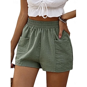 Dam Shorts i bomullslinne Byxor av linne i bomull Kinesiska Shorts Grundläggande Kort Hög midja Slät Ficka Elastiskt midjeband Bekväm Mjuk Microelastisk Utomhus Gata Blå Svart Rodnande Rosa Armégrön