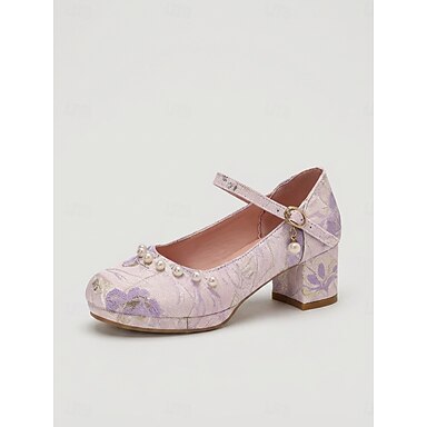 dampumps med blommig pärla och grov klack – eleganta trädgårdsfestskor