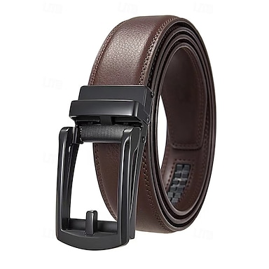 Herrbälte i äkta läder med automatiskt spärrspänne – klassiskt justerbart klänningsbälte för affärs-, kontors- och vardagsbruk