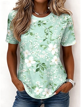 Dam T-shirt Mönster Blommig Ledigt Kortärmad Rund hals Vanliga toppar Dagligen Blå Svart Vit Ljusgrön Purpur Sommar