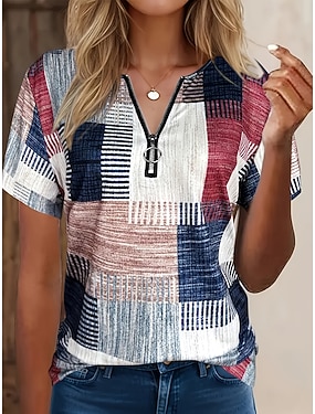 Dam T-shirt Fjärdedels blixtlås Grafisk Geometrisk Tropisk Hawaiisk Stylish Kortärmad Rund hals Vanliga toppar Dagligen Sport Utekväll Blå Rubinrött Purpur Orange Grön Sommar Vår